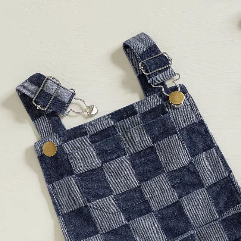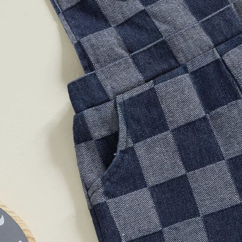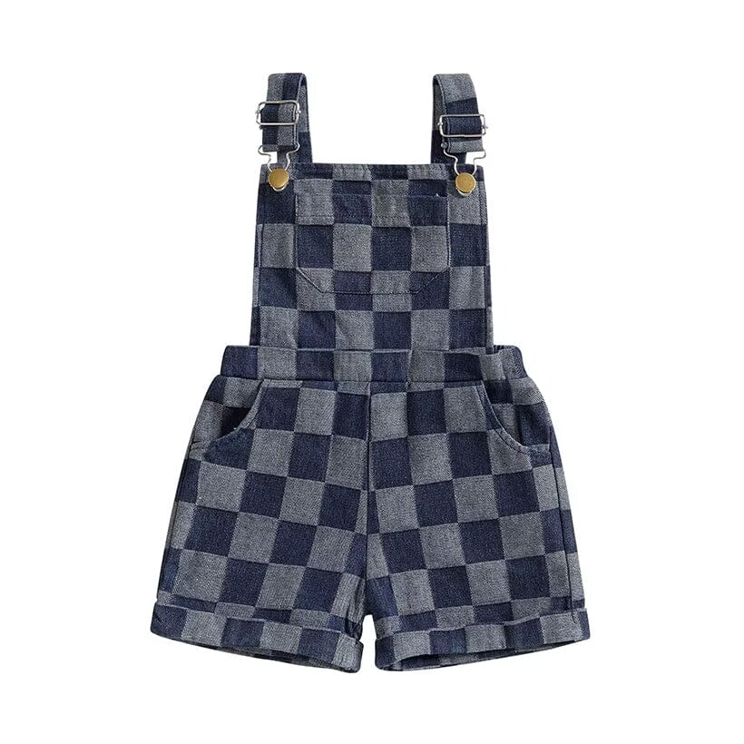 This stylish toddler girl romper features a trendy checkered pattern, perfect for little fashionistas. Designed with adjustable shoulder straps and secure metal buckle closures, it ensures a comfortable and customizable fit. Functional side pockets add a practical touch, making it both cute and convenient. Whether for casual outings, playdates, or a trendy everyday look, this romper is a must-have addition to your little one's wardrobe!