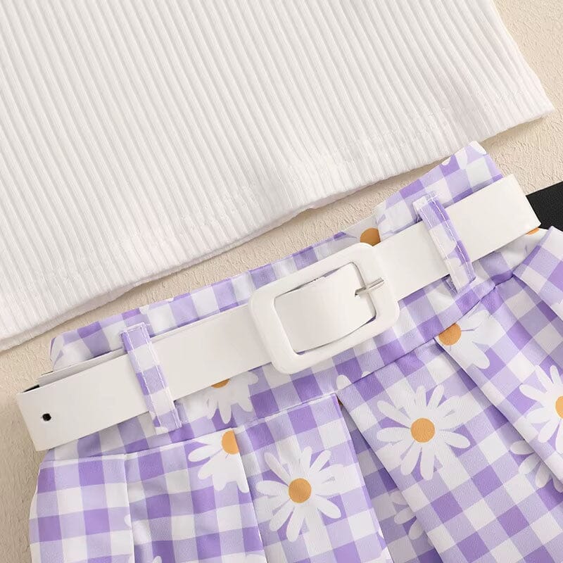 Sleeveless Collar Daisy Plaid Skirt Toddler Set