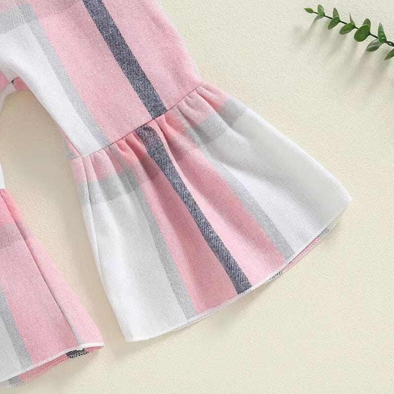Crafted for comfort and style, this toddler girl jumpsuit is the perfect blend of playfulness and practicality. Available in two delightful color schemes, each features a bold plaid pattern that catches the eye. The flared bell-bottoms add a touch of whimsy and freedom for movement, making it ideal for playful days out or cozy gatherings. It’s a standout piece that pairs beautifully with simple tops to complete a stylish, yet functional outfit for little adventurers.