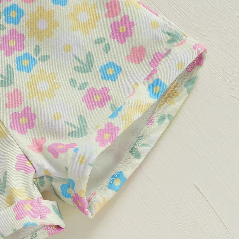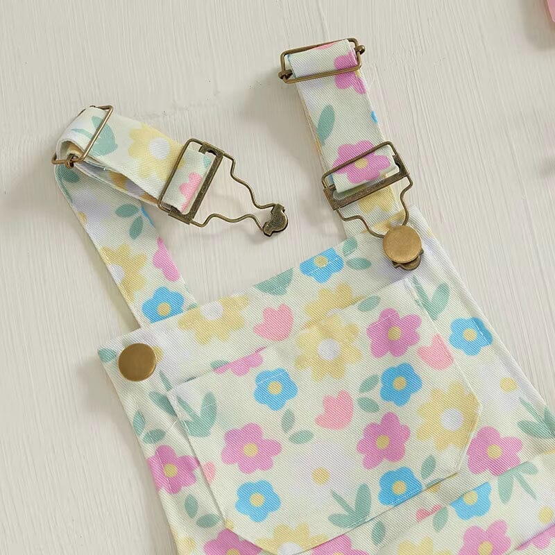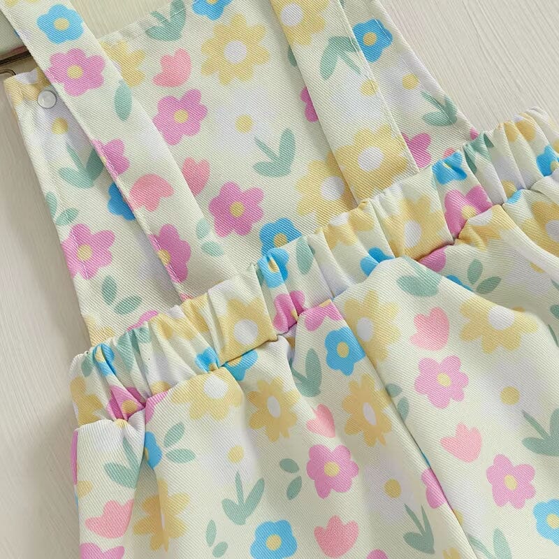 Add a burst of color to your toddler's wardrobe with these adorable floral rompers, available in two charming styles. Choose between a vibrant red-and-pink checkered pattern with bold floral designs or a soft pastel print featuring delicate flowers on a creamy background. Each romper is designed with adjustable straps and handy pockets, combining style with practicality. These rompers are a must-have for a fun and playful look your little one will love!