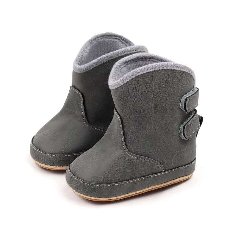 These versatile unisex baby boots are available in three timeless colors: gray, brown, and dark brown, making them a perfect addition to any outfit. Their sturdy design ensures durability while providing ample support for those first steps. Each boot is crafted with soft, flexible materials that comfort tiny feet, making them ideal for daily wear. The hook-and-loop closures make these boots easy to put on and take off, ensuring a snug fit.