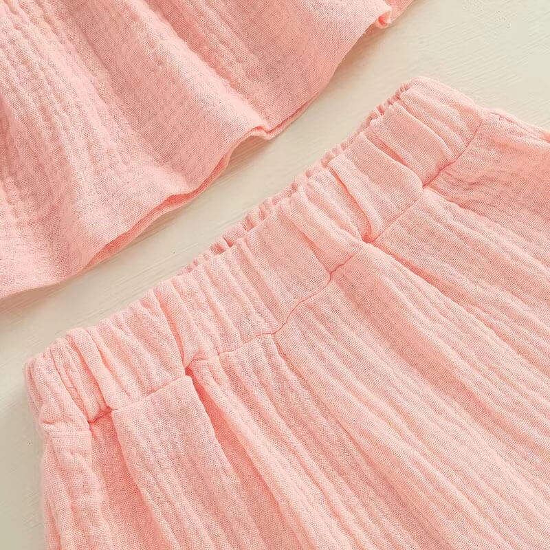 This adorable toddler girl set is perfect for any occasion, offering a blend of comfort and charm. The sleeveless top features an elegant bow detail at the waist, paired with frilly shorts that add a playful touch. Available in three delightful colors, this set is designed to suit every personality and style. Whether for playdates, parties, or casual outings, this outfit is a versatile addition to any toddler’s wardrobe!