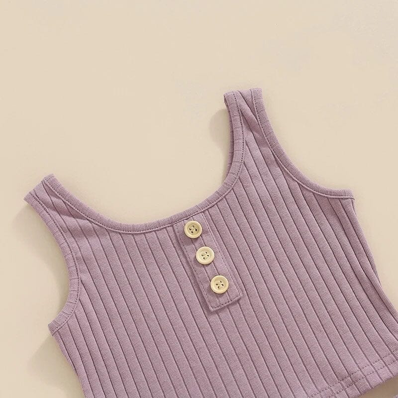 - Stylish ribbed tank top with decorative buttons and coordinating shorts