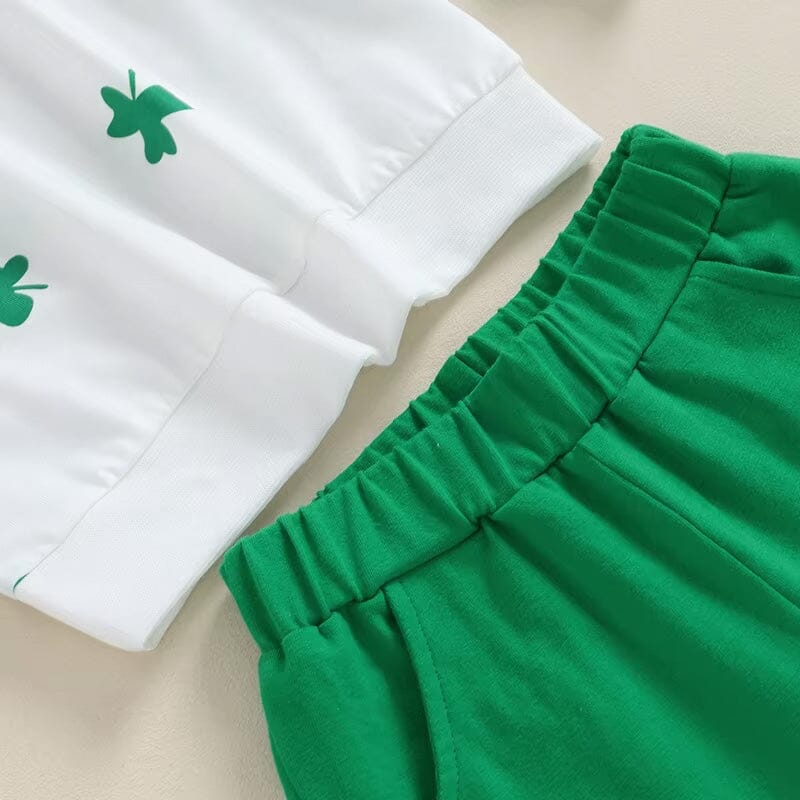 Get your little one ready for St. Patrick’s Day with this adorable unisex toddler set! Featuring a cozy white sweatshirt adorned with playful green shamrock prints, it’s perfect for festive celebrations. The matching green jogger-style pants ensure maximum comfort and flexibility for all-day wear. Whether they’re joining a parade or enjoying family festivities, this set brings charm and festive vibes to your toddler’s wardrobe.