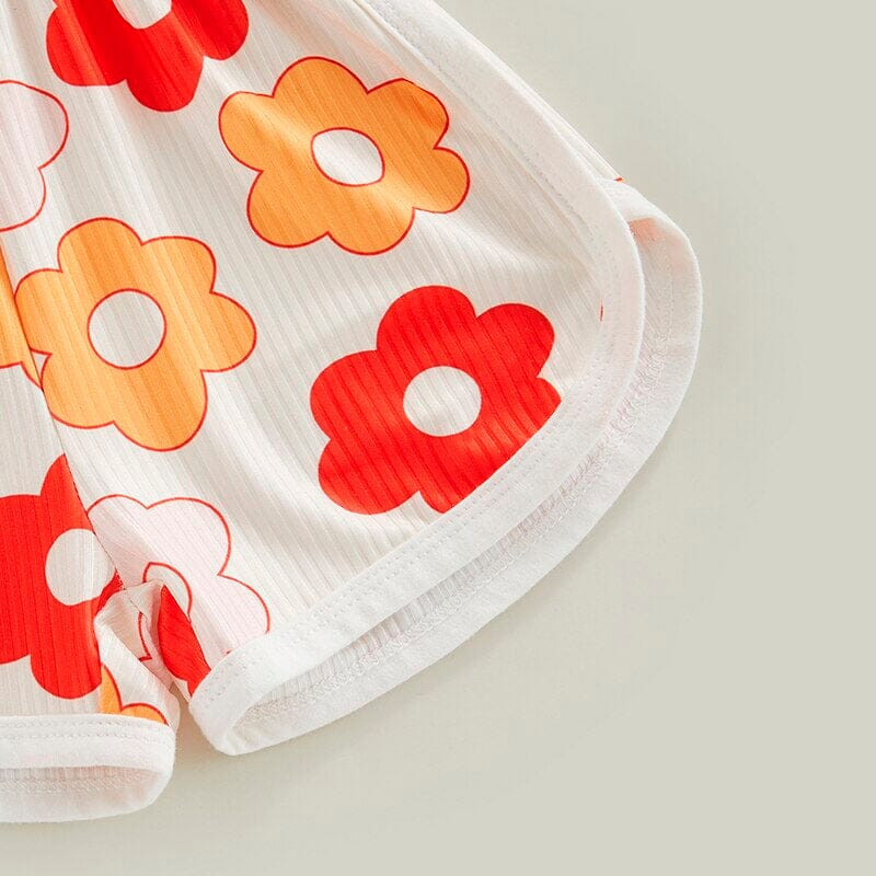 This toddler girl romper is perfect for warm weather and features a cute floral print on a white background. The romper has adjustable shoulder straps for a comfortable and secure fit, and is designed with a loose and flowy style that allows for ease of movement. Made with a soft and lightweight fabric, this romper is perfect for a day of play or a special occasion.