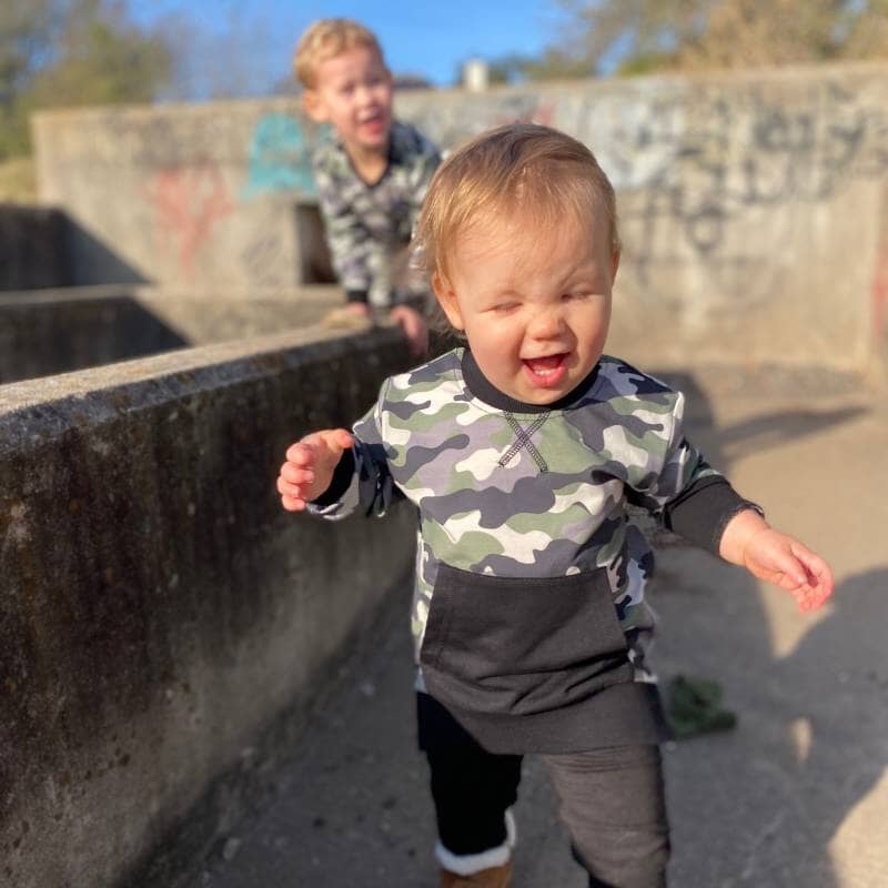 Matching Sunday & Co Camo Joggers Pullover Top available for a complete look.