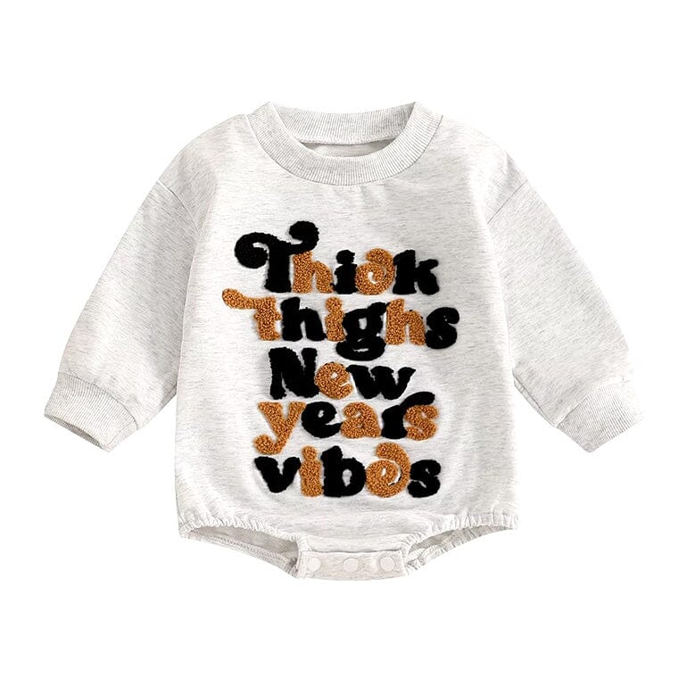 Ring in the New Year with our adorable 'Thick Thighs New Year Vibes' bodysuit, designed for little ones with big personalities! Made from a soft, comfortable fabric, it's perfect for all-day wear, from the last moments of the old year to the first giggles of the new. Celebrate in style with this cute and cozy bodysuit, guaranteed to be the highlight of your holiday gatherings