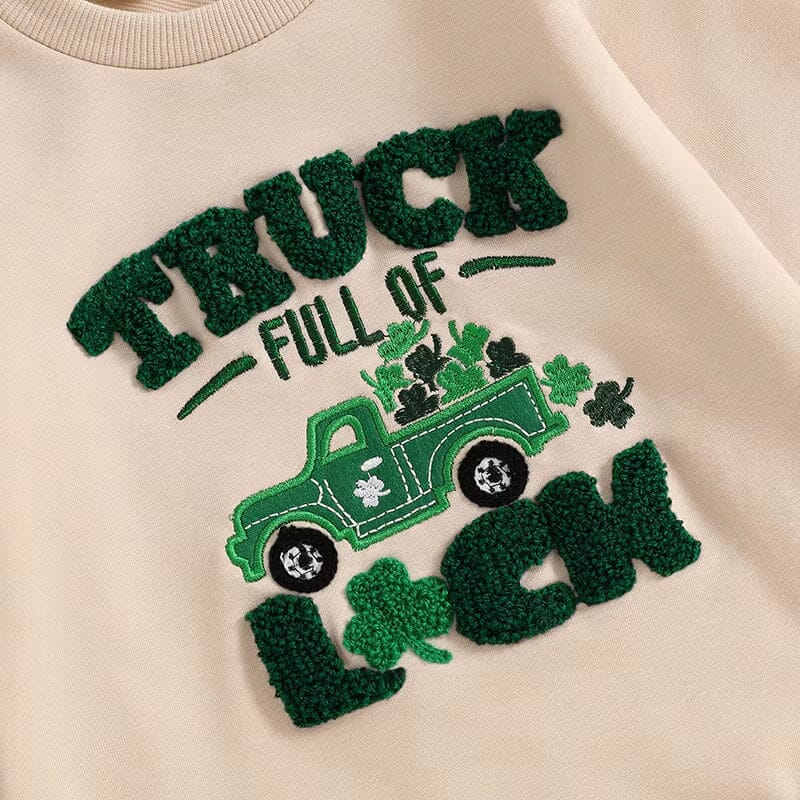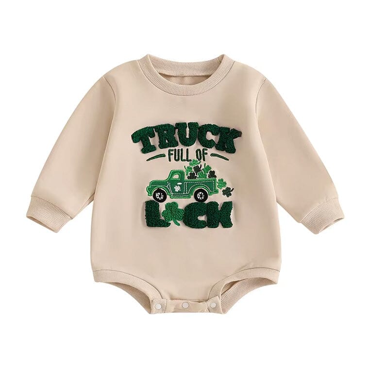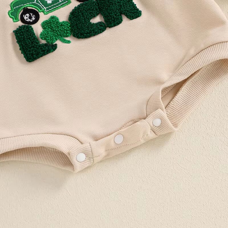 Bring a little luck to your little one's wardrobe with this charming unisex baby bodysuit, just in time for St. Patrick's Day! This adorable outfit features a playful "Truck Full of Luck" motif, complete with a classic truck and shamrocks in vibrant green embroidery. The soft, neutral beige color makes it a versatile choice for both boys and girls, while the comfortable cotton blend fabric ensures ease of movement and durability.