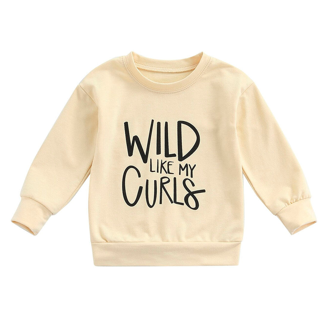 This adorable toddler girl sweatshirt with the fun and sassy lettering "Wild like my curls" is perfect for your little girl who loves to show off her natural beauty and wild spirit. The sweatshirt is made of soft and comfortable material, perfect for all-day wear and play. Your little girl will love the playful message on this top and will enjoy showing off her unique personality in style.